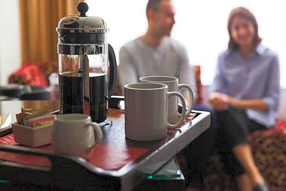 All suites have a king-sized bed in the bedroom and a separate seating area that includes a sofa. Washrooms are equipped with both a soaker tub and a walk-in shower. This room includes complimentary French Press coffee and tea service each morning. This room features window seat, media hub, TV in both the bedroom and living area, refrigerator, and a work desk.